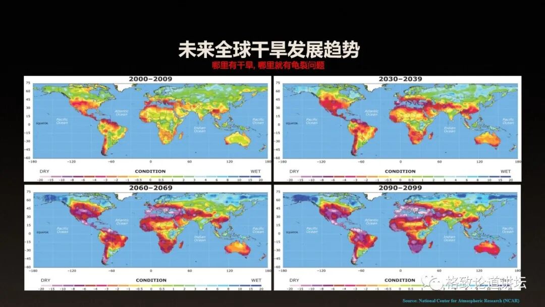 可以说,土体的龟裂问题也会越来越突出,哪里有干旱,哪里就会有这样的龟裂问题。