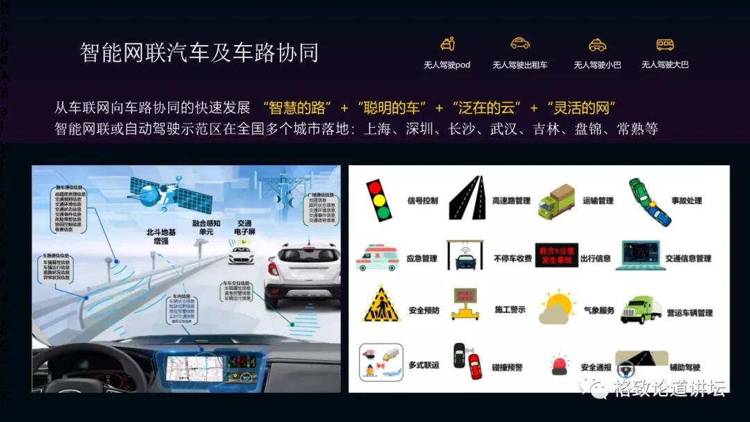 通过这样的技术,我们能够实现智慧的车、智慧的路,包括泛在的云,还有灵活的网,一套完整的无人驾驶的体系,能够支撑整个行业在无人驾驶方面的发展。