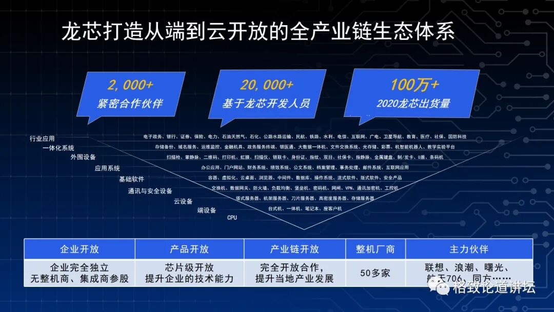 应该说我们从0%到1%,就是这两年发生的事情,这两年整个国产的链条都发展得非常快,龙芯从端到云,有一个产业生态体系。