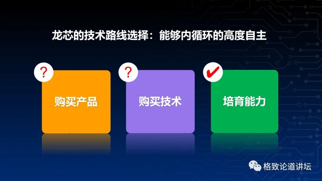 龙芯选择的是一个HARD模式,即非常难的一种模式,走的是高度自主的路线。