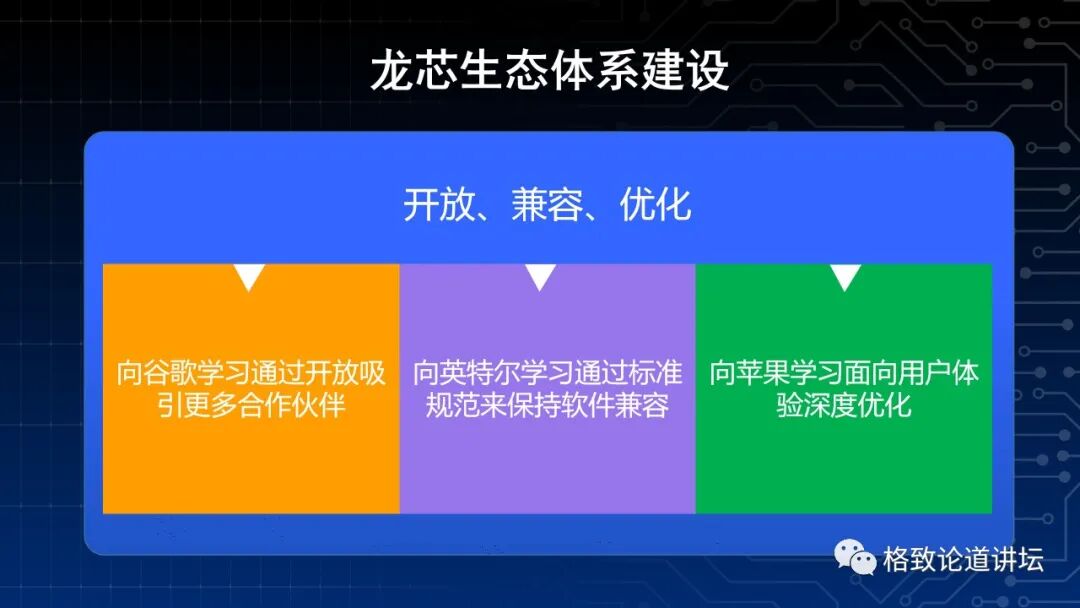 得有很多人愿意用龙芯,愿意给它做整机,愿意给它写软件,要有一个繁荣的产业生态,在某种意义上来说难度更大。