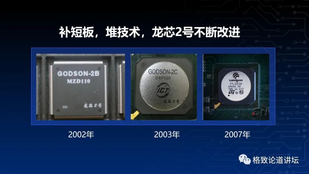 再接下去,就把一个个先进的技术往龙芯2里面堆,努力地去追赶国际先进技术前沿。