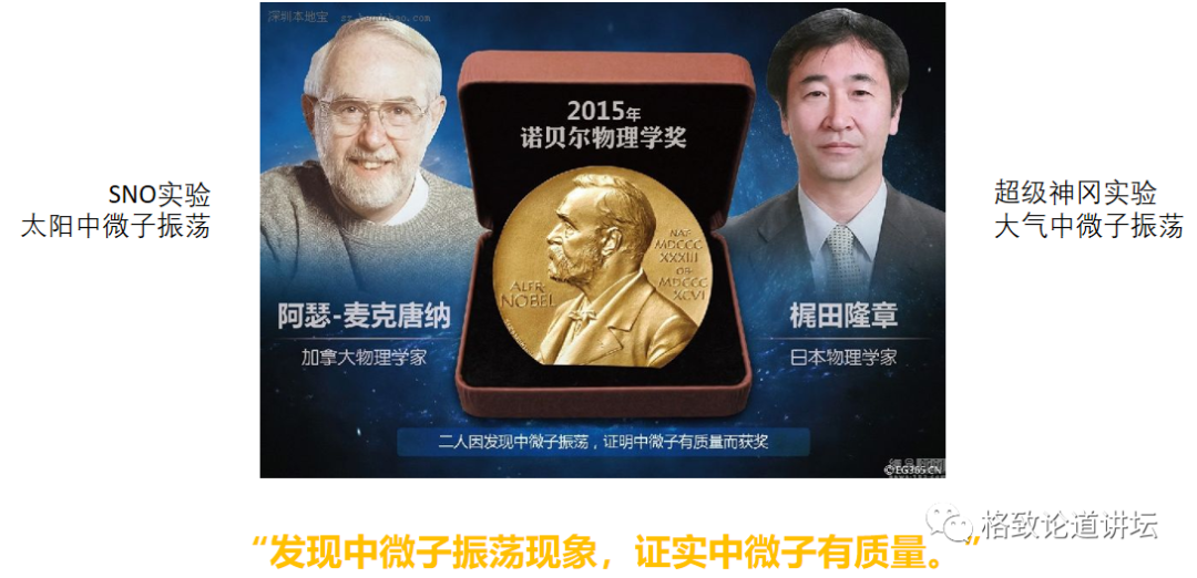 日本的超级神冈实验和加拿大的SNO实验,分别探测了大气中微子振荡和太阳中微子振荡,实验中观察到电子中微子消失的现象,更重要的是还发现了另外两种新的中微子产生。