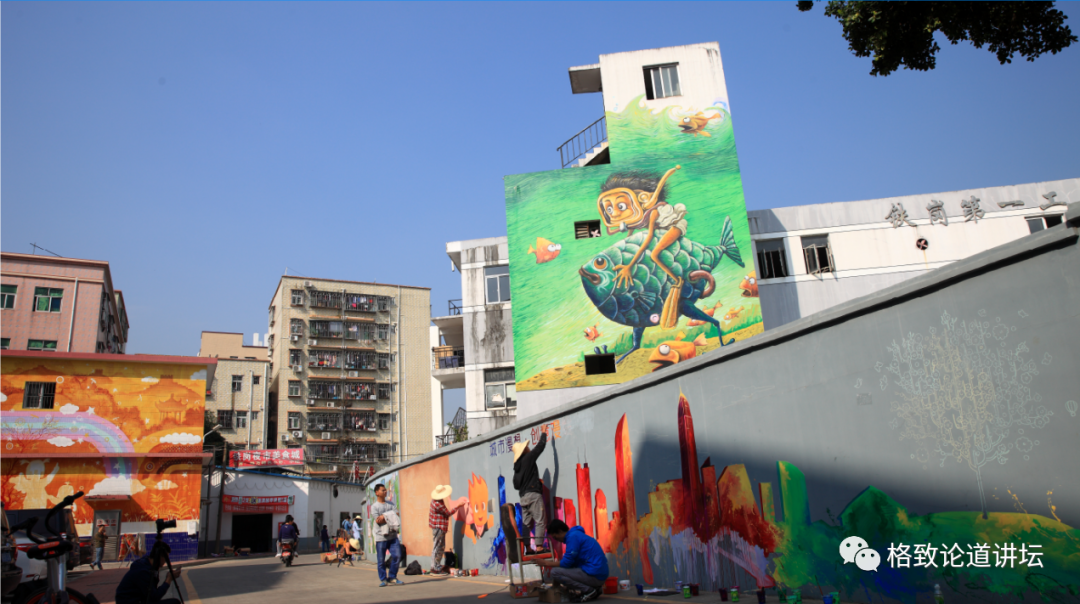 而固戍社区是中国最大的社区,足足有30多万人,我们把壁画实施到公共的墙面上,把当地的本土文化传达给所居住在周围的这些居民,让全国各地来的务工者感受到社区的温暖。