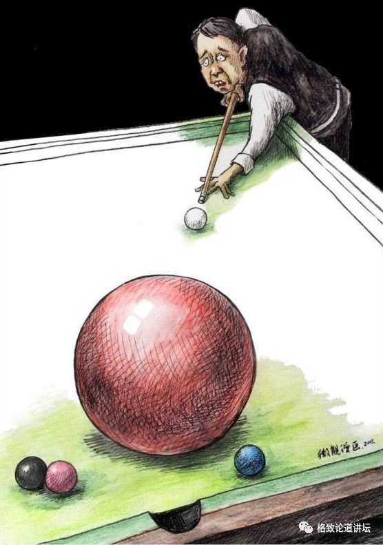 我觉得“时评漫画”就像这副作品一样,我们拿着球杆不断敲击白球,向社会诉说、去反映这些现象,只要不断去做,终将完善我们的社会,把这些不好的现象慢慢杜绝。