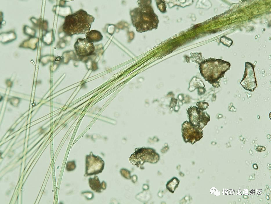 我们在光学显微镜下观察这些“绳索”,发现它们是绿色的。绿色的植物体意味着它能够进行光合作用,能够自力更生养活自己。