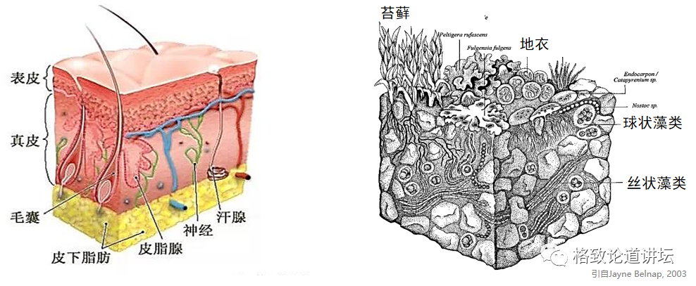 为什么叫它“皮肤”呢?因为它是有活性的,它能像真正的人类皮肤一样去呼吸、去排泄、去生产、去维护荒漠生态系统的稳定。