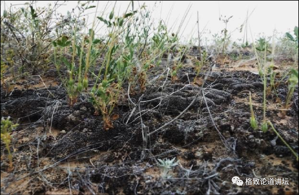 讲到这里,大家可能会说,沙漠“皮肤”真好,越多越好,如果整个沙漠都是它们就好了。但是,我要告诉大家,这是不行的。任何事物都有两面性,如果结皮大量生长,其他物种的生存空间就会迅速丧失。