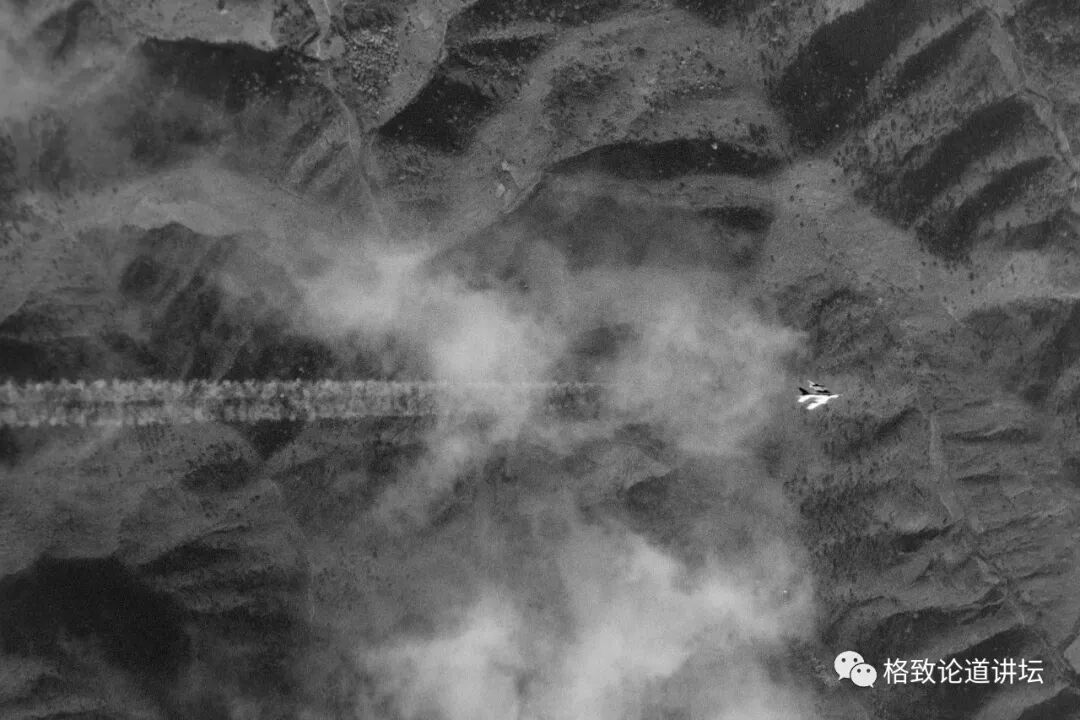 当这张照片无限度放大时,我们会发现一个惊人的事实,让人惊讶也让人感叹。这是一张1亿像素级的照片,我们可以看到有一架小飞机,那架小飞机是当时中国空军某部的歼-6飞机,我们的飞行员在下面正尽最大的努力驾驶歼-6奋起直追。