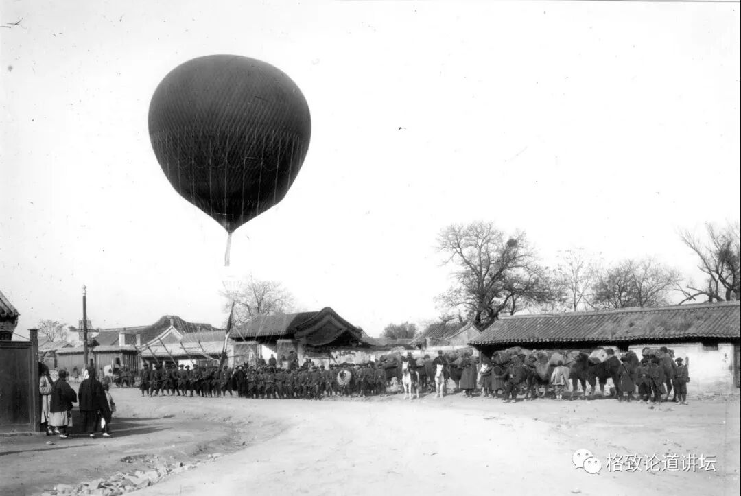 再过十几年,1900年八国联军打进北京,法国人带来的侦察气球在北京变了个身份,从军事侦察工具转变为航空观光的工具。法国人把相机搬上气球,为中国古老的北京城留下了最早的航拍照片。