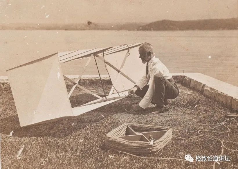 又过了90年,中国的风筝在西方迎来了第二次变迁,我个人把它称作是西方人对中国风筝的迭代创新。这次是由澳大利亚人哈格雷夫完成,他把中国的平板式风筝上面又加了一层,从一个平板变成了一个盒子。