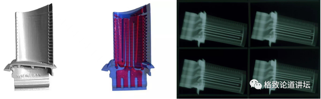 我们把航空发动机的涡轮叶片放到X光下拍个照,发现内部有着像九曲迷宫似的空气流道,因为我们要从内部强行注入冷空气,为涡轮叶片进行冷却,防止它熔化和变形。叶片工作的时候,外部的温度是1600摄氏度,但是内部只保持着几百度的高温。