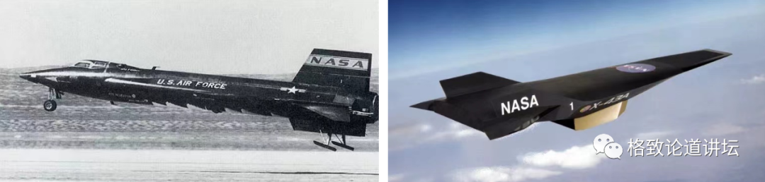 X-15航天飞机(左)和 高超声速飞机X-43(右)