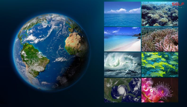 大家可以看到我们的星球——地球是一个蓝色的行星,它表面的70%以上的面积都是被海水所覆盖。大家平时说到海洋的时候,首先想到的就是辽阔的海面,会想到阳光沙滩、巨浪、台风。