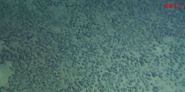这就是蛟龙号在2013年,在我们国家的南海蛟龙海山海域,在一次下潜过程中无意间发现了一片矿区,这里面一颗一颗的都是结核。