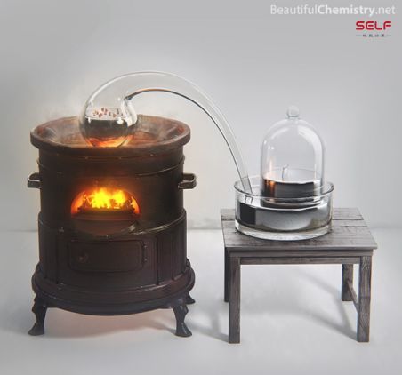 这是拉瓦锡用来确定氧气在空气中比例的一套装置。它把水银在一个密闭的环境中加热,经过12天加热之后,表面会形成很多红色的颗粒,就是氧化汞,空气也会减少一部分。