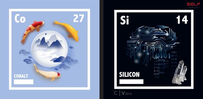 她现在有自己一个叫做“Alchemy”炼金术的网站,她正在给每一个元素画插画。左图是钴,为什么里面有青花瓷呢?因为青花瓷的颜色,蓝色主要是来自含钴的矿物。