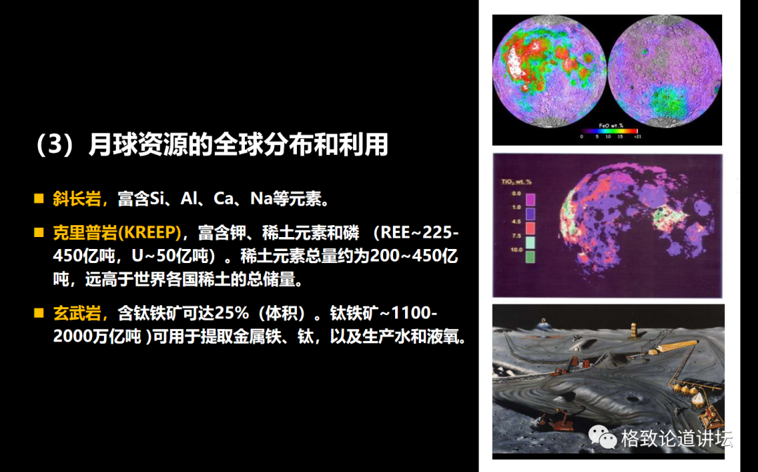 我们之前也不知道月球上到底有什么矿,所以我们用“嫦娥一号”“嫦娥二号”做了全月球表面的各种成分与含量,去分析它有哪些矿。
