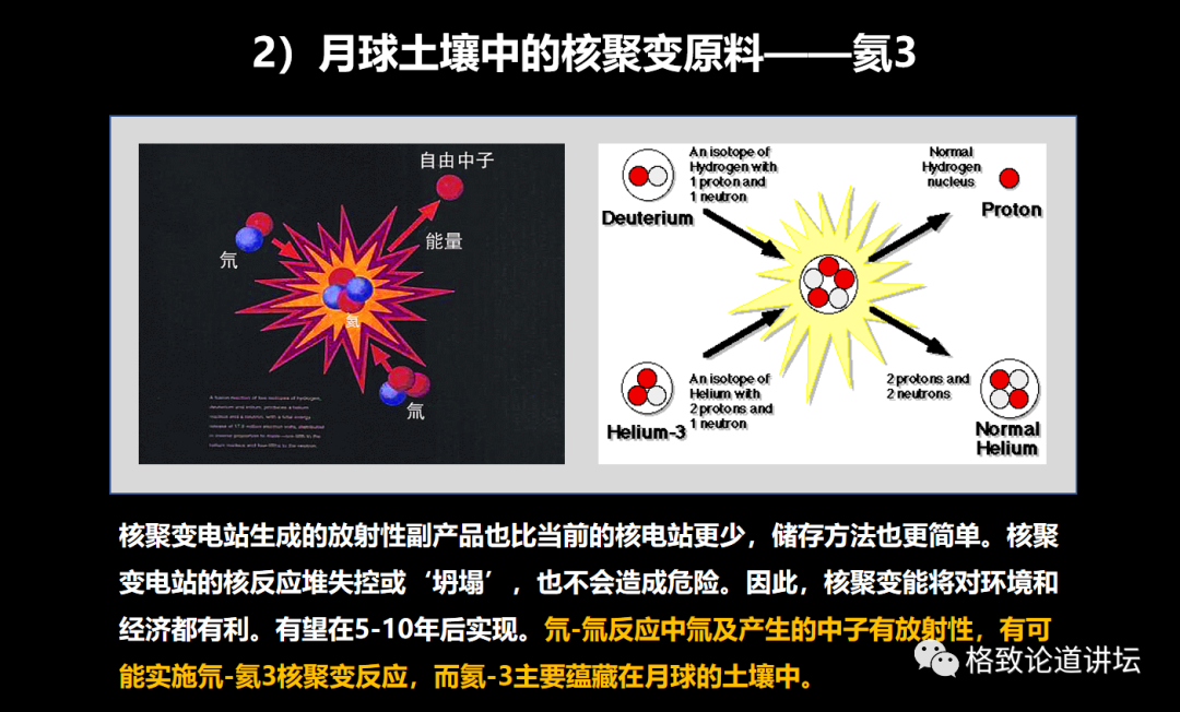月球上还有一种能源,就是月球的土壤里面还有一种核聚变原料——氦3,这是过去不知道的。