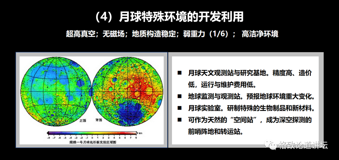 月球还有一个好处,“嫦娥三号”就做了,在月球上面放一个望远镜来巡视整个银河系。我们有了很多新的发现,而在地球上干扰太多了。