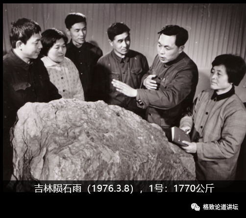 上图是当年欧阳自远院士带领研究人员,在吉林考察我国最著名的一块石陨石,那也是世界上最大的石陨石雨,其中最大的一块将近1.8吨。
