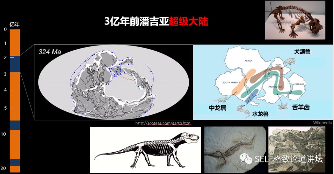 3亿年前地球上有一个潘吉亚超级大陆。潘吉亚是一个古希腊词——PANGEA,PAN是所有的,GEA是陆地的意思。