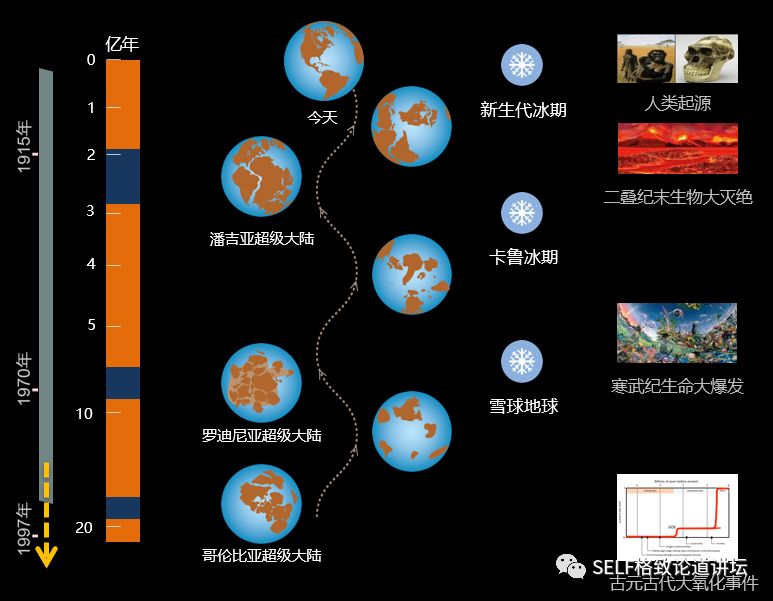 大家可以看到这张图,这张图是2017年在网上发布的,从1500Ma开始,为什么从这个时候开始?因为再往前的历史是不明确的。地球上是有板块构造的,板块构造是区分地球和其他所有星球的关键标志。