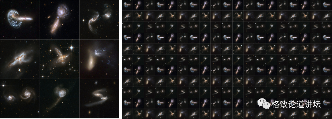 但是,我们去看右图哈勃望远镜拍到的这张图片,里面的星云分解成了一颗一颗的恒星。我们能知道它们的亮度,颜色。可以来推断这样的一个星系是如何形成的。