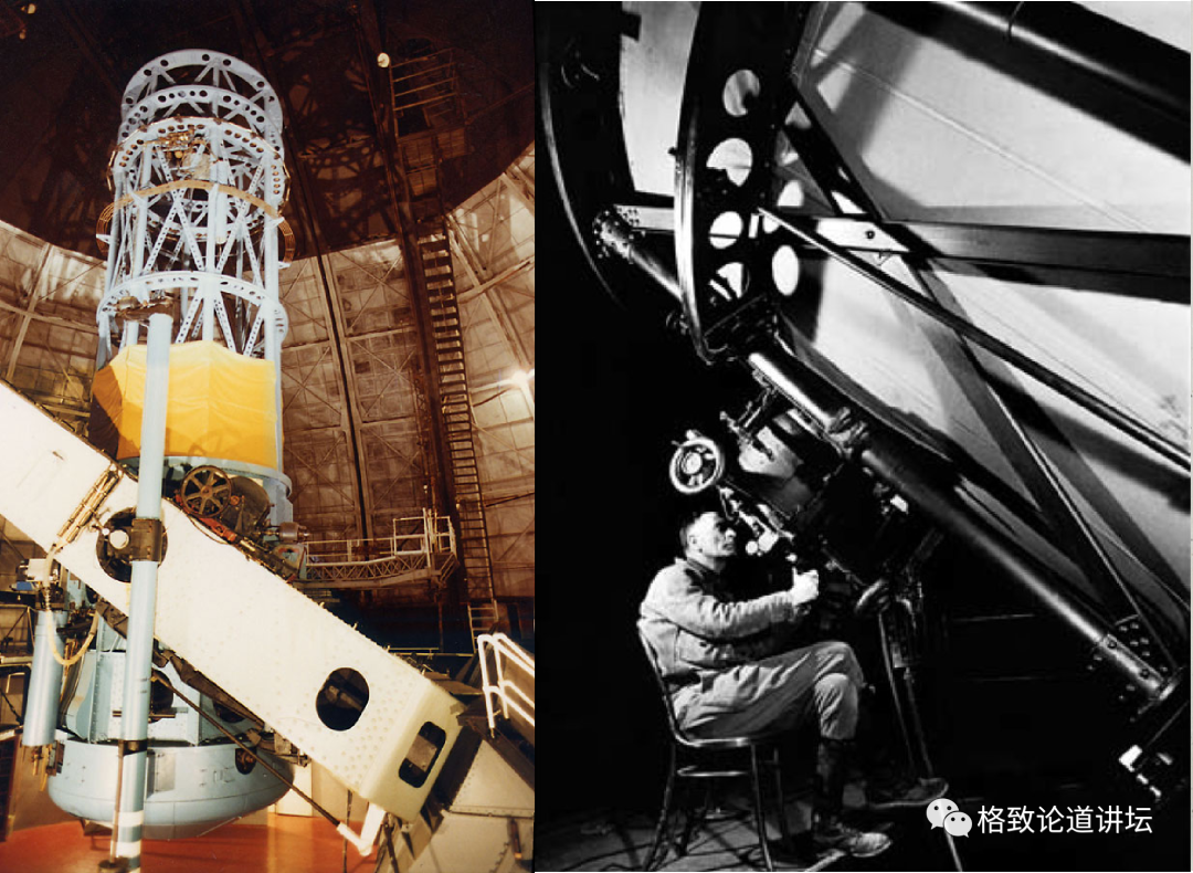 胡克望远镜(左)和埃德温·哈勃(Edwin Hubble)(右)