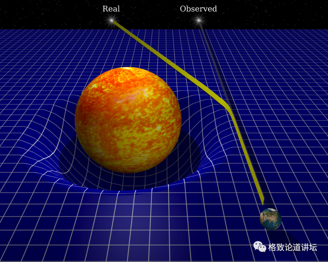 我们假设遥远的宇宙中有一颗恒星,或者有一个星系,它发出了光。在这个光线行进的路径上存在着宇宙中各种各样其他的天体,这些天体的存在会使得宇宙的空间微微的弯曲。