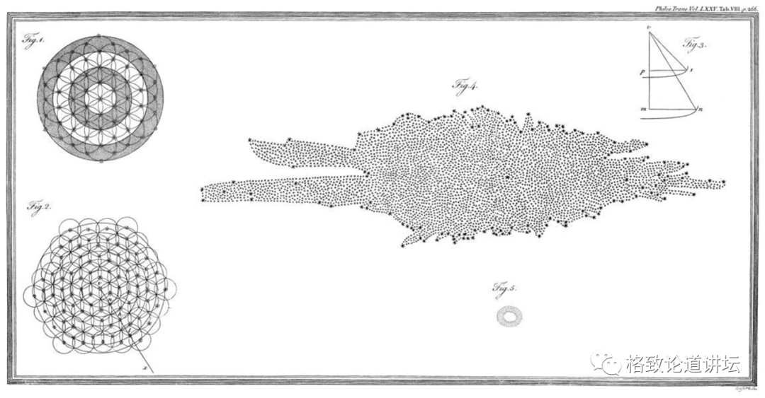 他还用这台望远镜去扫视我们的天空,向各个方向去数星星。有的方向星星少,他就猜这个方向银河的边界比较近;另一个方向的恒星多,他就猜那个方向的银河边界比较远。他用这样的方法画出了近代历史上第一张银河系的地图。虽然并不是那么准确,但这是人类第一次利用科学的力量去测绘宇宙到底是什么样的。