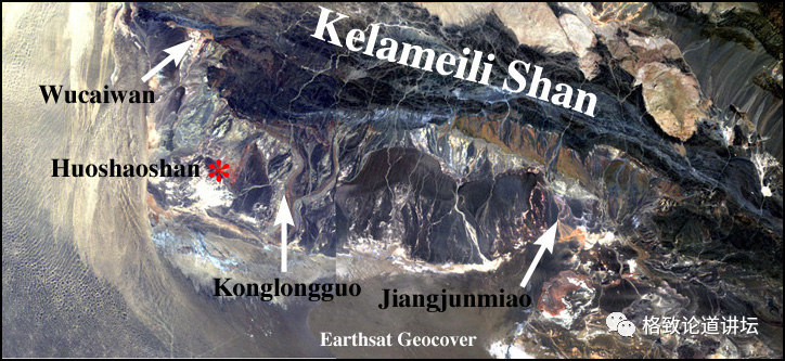 我给大家展示其中一种方法,就是通过卫星地图,结合地质图、地形图等,在图上找到保存恐龙化石的中生代地层的位置。一般来说,化石恐龙是在中生代地层中发现的。所以,我们要先找到合适的地层,然后再到这里找恐龙化石。