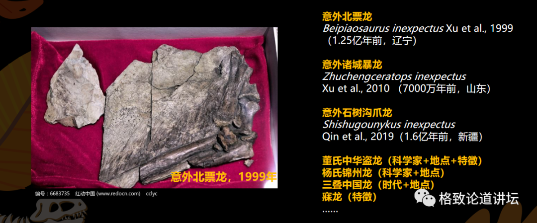 我们还可以根据化石产出的地点、时代,或者根据特征来命名恐龙。