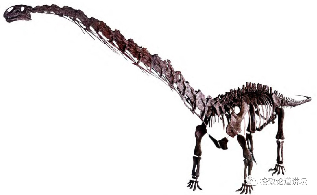 但它并不是最大的恐龙,有些大型的恐龙比如阿根廷龙、中国河南发现的巨型汝阳龙等巨龙类恐龙,它们的体形比马门溪龙大,但它们的脖子在身体中所占的比例并没有马门溪龙长。所以,马门溪龙是脖子占身体比例最大的恐龙,这是一个世界之最。