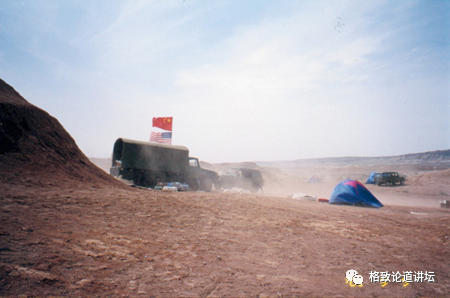 很多时候挖恐龙化石需要到比较偏远的地方。下图是我20年前在新疆的戈壁里找恐龙化石的照片。大家会看到我们要用到卡车、吉普车等越野能力比较强的车。
