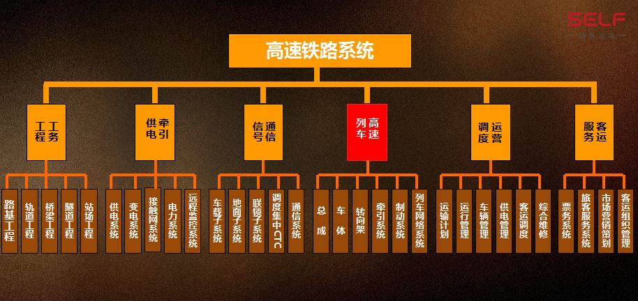 首先是工务工程,有桥梁、有隧道、有站场;上面架着电线,要供电系统;有通讯信号,每个车在什么位置;有运营调度,运营调度就是我们看到的时刻表;旅客服务,这是和我们打交道比较多的。