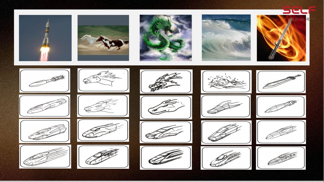 还要体现中国的民族文化特色,别人一看这是中国的车,是象征我们中国的。关于这方面,我们叫工业设计。工业设计都是基于很抽象图形,从抽象型的龙、马、火箭,像画草图一样,画出一个大概模型,慢慢地过渡到车,以此基础,把三维的造型弄出来。