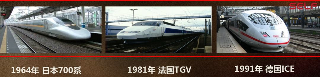 首先讲一下高铁的历史吧。1964年,日本在奥运会前夕开通高铁,和我们2008年奥运会开通高铁完全一样。所以,高铁是从1964年开始有的,他们叫子弹头,每小时200公里。那了不得了,全世界都竖大拇指!从那以后,全世界都开始进行研究,法国1981年有了高铁叫TGV,德国1991年有了高铁叫ICE。