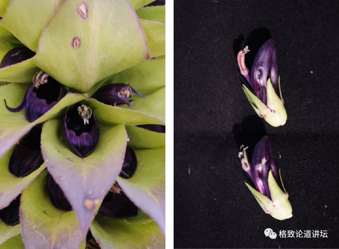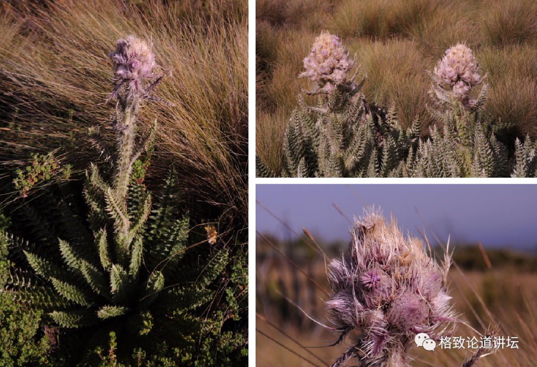 但是它的兄弟在非洲完全就是另一个样子。我们从上图中可以看到,整个花序会密集成一个圆柱状。然后每一朵小花都藏在苞片里边,就是为了保暖。
