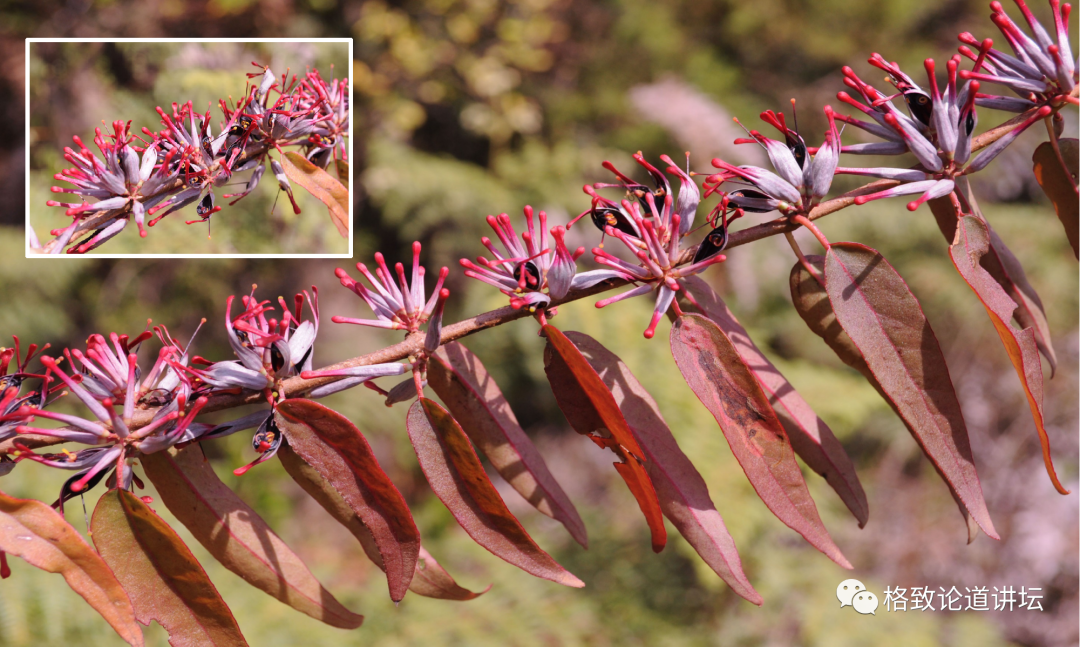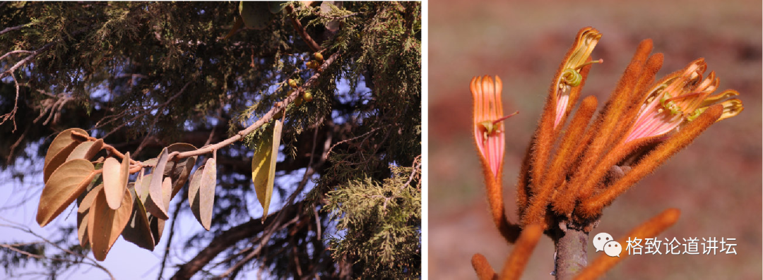 这就是在柏树上长出来的一种篱药寄生,左图是它的叶子,右图是它的花,也是非常漂亮的。