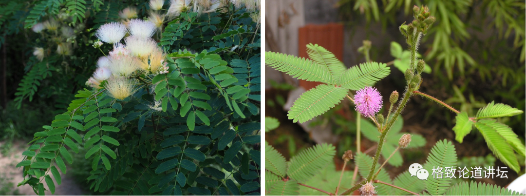 山槐Albizia kalkora(左)和含羞草Mimosa pudica(右)