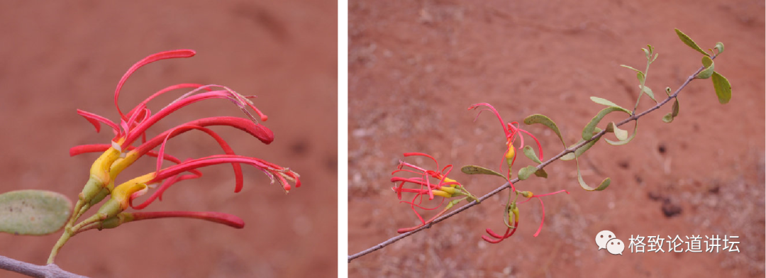 它们开花的时候非常漂亮,每朵花像一只飞翔的小鸟,事实上它也可能是靠这种形状来吸引鸟类为它传粉的。