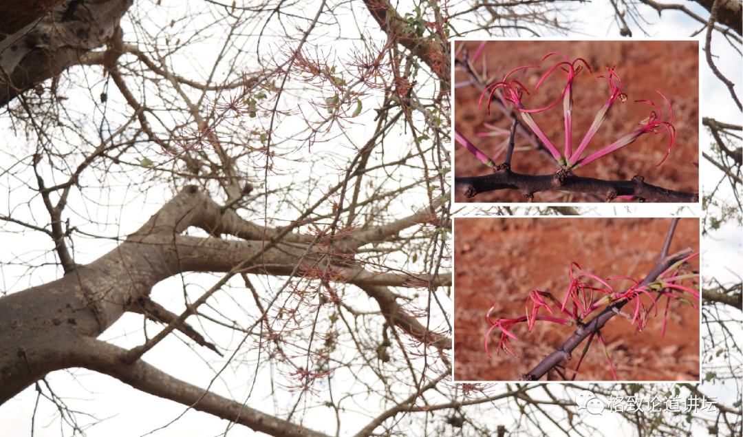 刺桐在草原区也是很常见的,往往会在旱季开满树的红花。为什么叫刺桐?因为它的树干上密密麻麻都是刺,所以很多动物是上不去的。