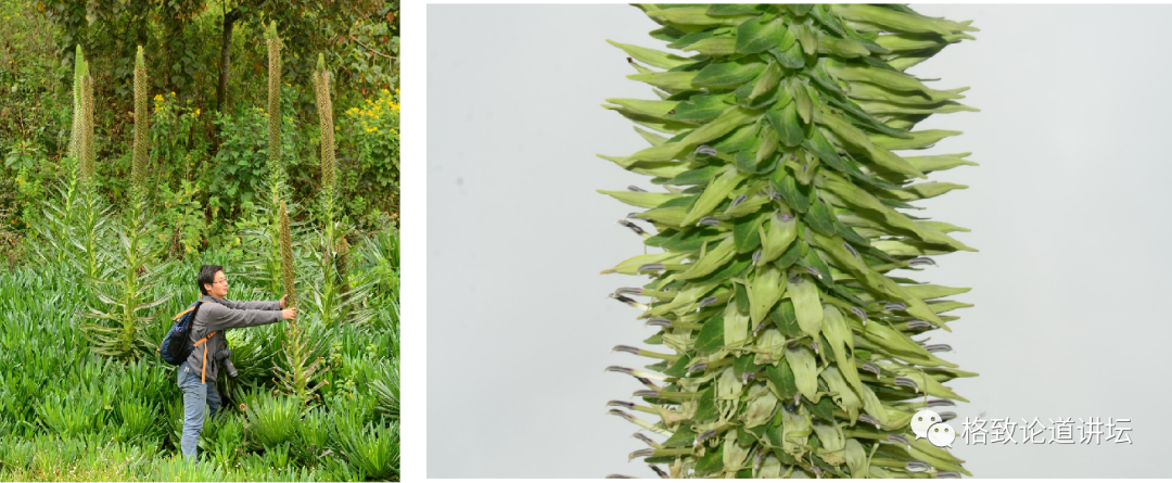 除了千里木之外,在非洲当地还有一类草本植物也能长得非常高大,这是一种巨型半边莲。我们国内也有半边莲,像上图中的密毛山梗菜,它在国内大概也就能长到一米多高,花序比较大。