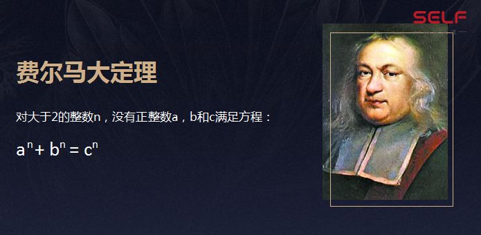 这就是所谓的费尔马大定理。用公式写就是,对大于2的整数n,不存在正整数abc,使得a的n次幂加b的n次幂等于c的n次幂。其实费尔马自己只证明了n等于4的情形。欧拉证明了n等于3的情形。在他提出之后的358年的1995年,由当时普林斯顿大学的Andrew wiles教授所证明,他现在在英国牛津大学。