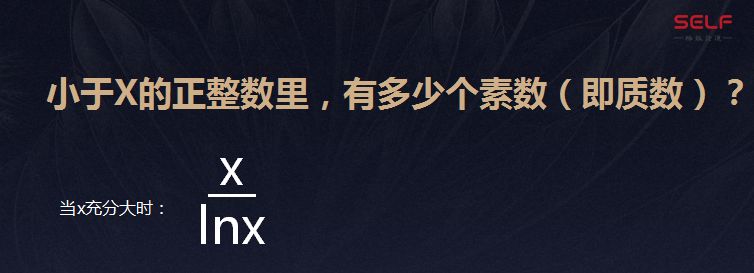 我们数数看,小于X的正整数里有多少个素数?X小的时候能数,X大了很难数了。而素数定理告诉你,当X充分大的时候,这个值与X除于LnX的值相近。近看小于X的素数值看不出所以然来,远看它却表现出优美的规律,X除以lnX,这就是数学的美妙之处。