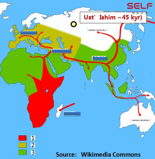 但付巧妹通过一个自西伯利亚发掘的典型样本Ust’ -Ishim,发现早期现代人走进亚洲并非仅仅只有南线。这一样本个体生活于约4.5万年前,是在非洲与近东之外发现的有直接测年的最古老的现代人。根据“南线”假说,如果他是沿南线进入亚洲,那么他理应呈现出后期迁徙人群更为相似的遗传特征,而与早期的大洋洲人更远。然而研究发现,他与现代欧亚人并不存在更相近的联系。