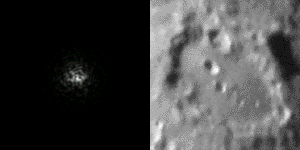 左图就是星光闪烁的情形。如果在这种条件下看月亮的话,月亮的环形山就会变得模糊起来,甚至给人一种抖动的感觉。实际上这是受到了视宁度的影响,是大气不够稳定的结果。