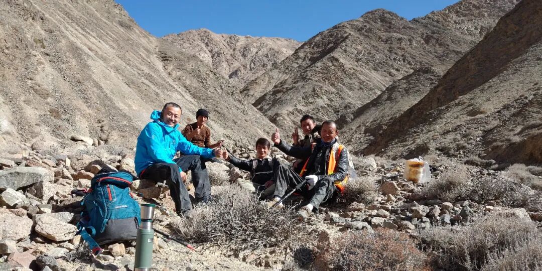 上面是我们在一次爬山途中与帮我们运送物资的藏族同胞相会后一起拍的相片。他们的体力是真的好,我特别佩服、也特别感谢这些藏族同胞。