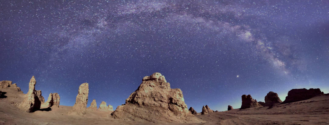 这是我们每天都可以看到的美景。在这张照片中,天文台上的几个望远镜已经开始基建,天际线那里有一条明显的分界线,那是柴达木盆地里面的浮尘和上面的星空之间的界限。